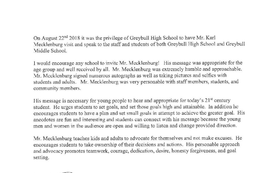 Referral letter Greybull High School and Middle School