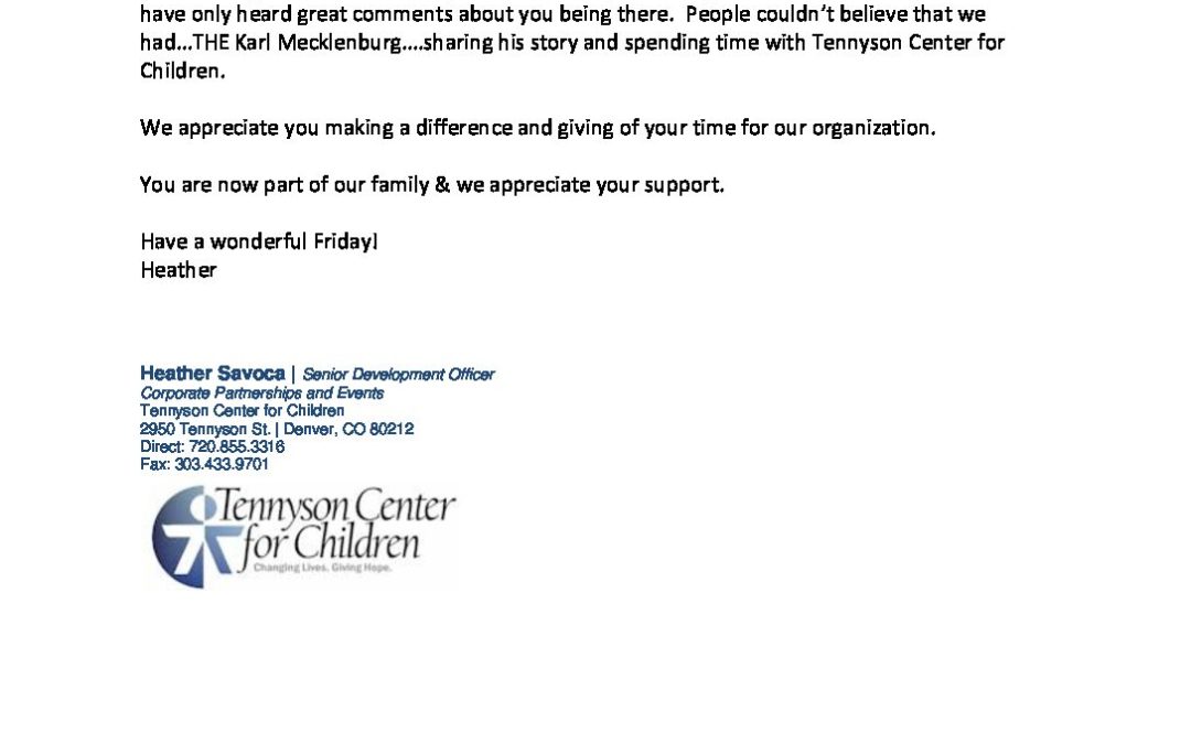 referral letter Tennyson Center for Children Fund Raiser